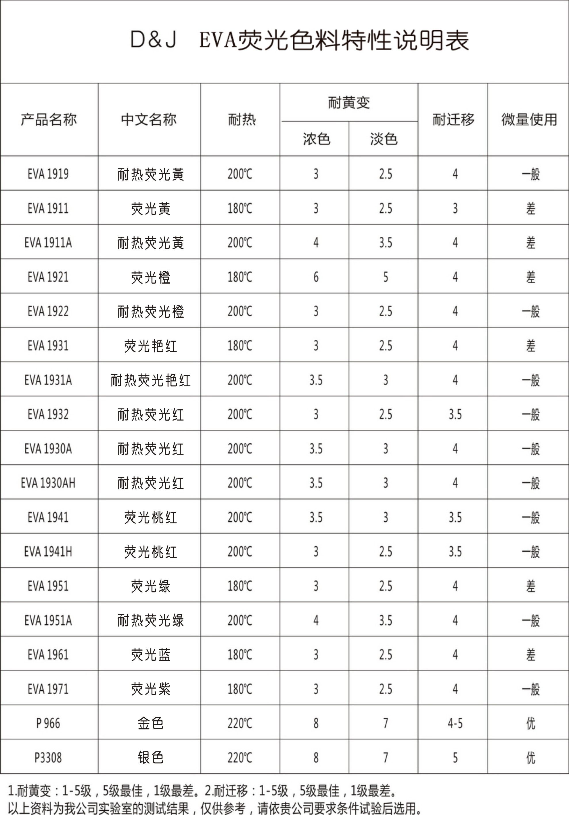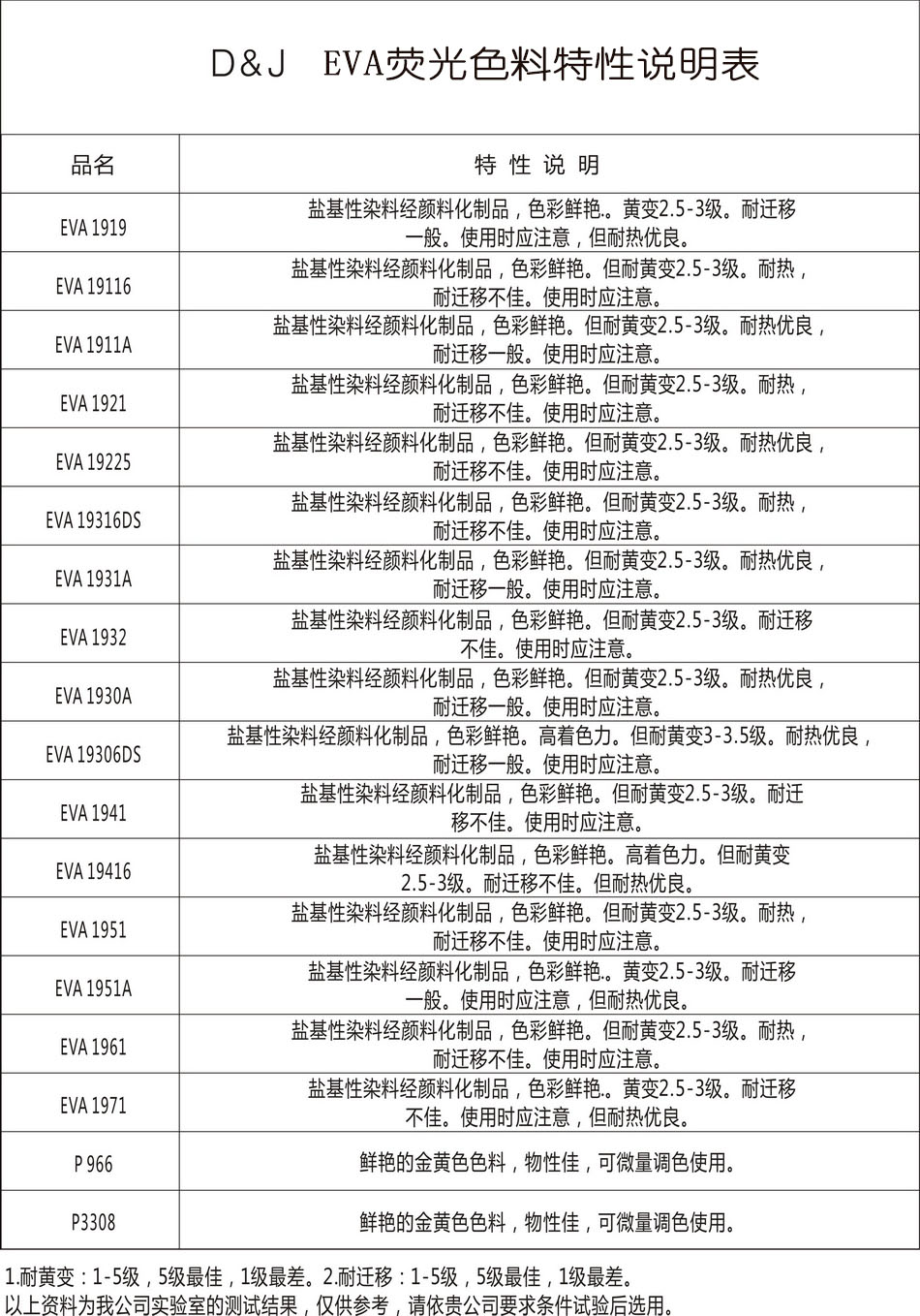 EVA用荧光色料(EVA-FLUORESCENT COLORS)简介: